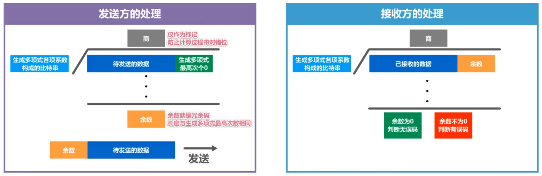 3)接收方通过生成多项式来计算收到的数据是否产生了误码