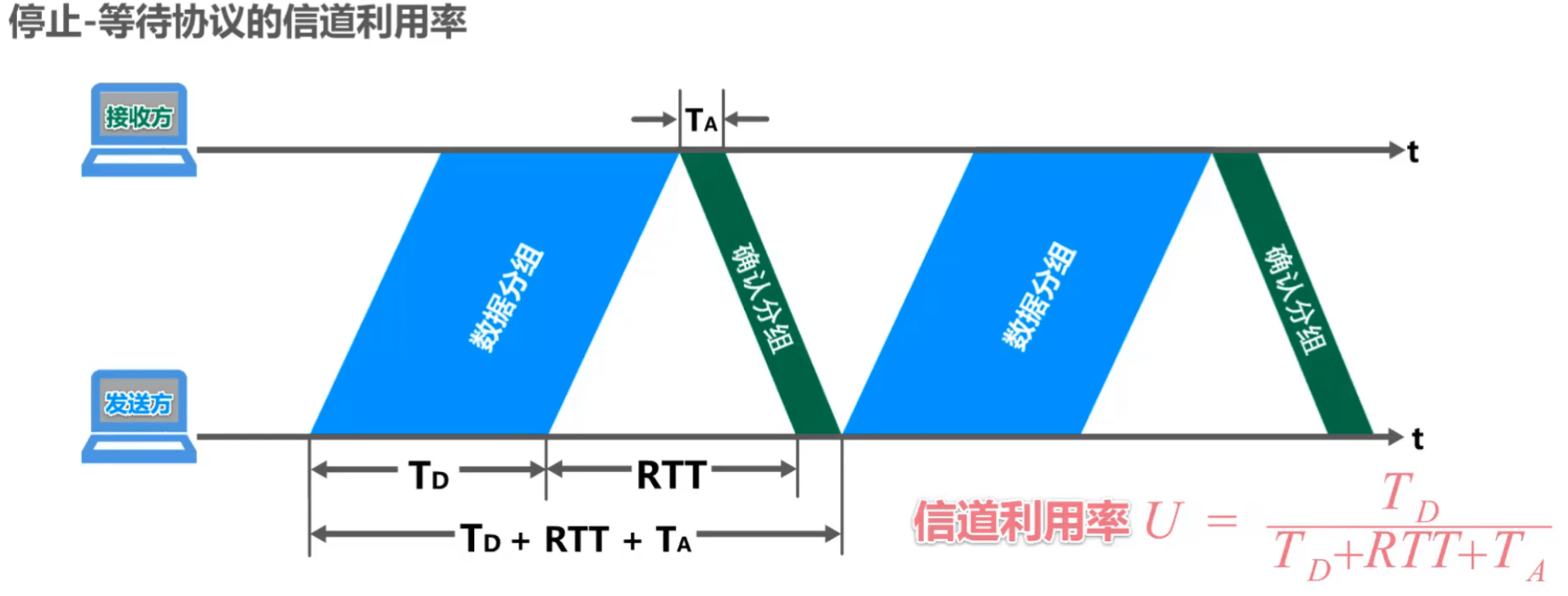 公式:信道利用率$ U=\frac{T_D}{T_D+RTT+T_A} $