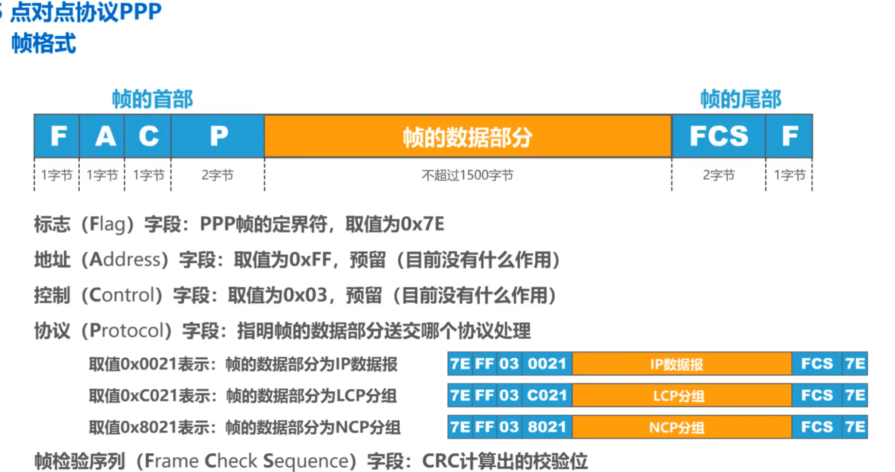 1)标志字段(Flag):PPP的帧定界符,取值 0x7E
