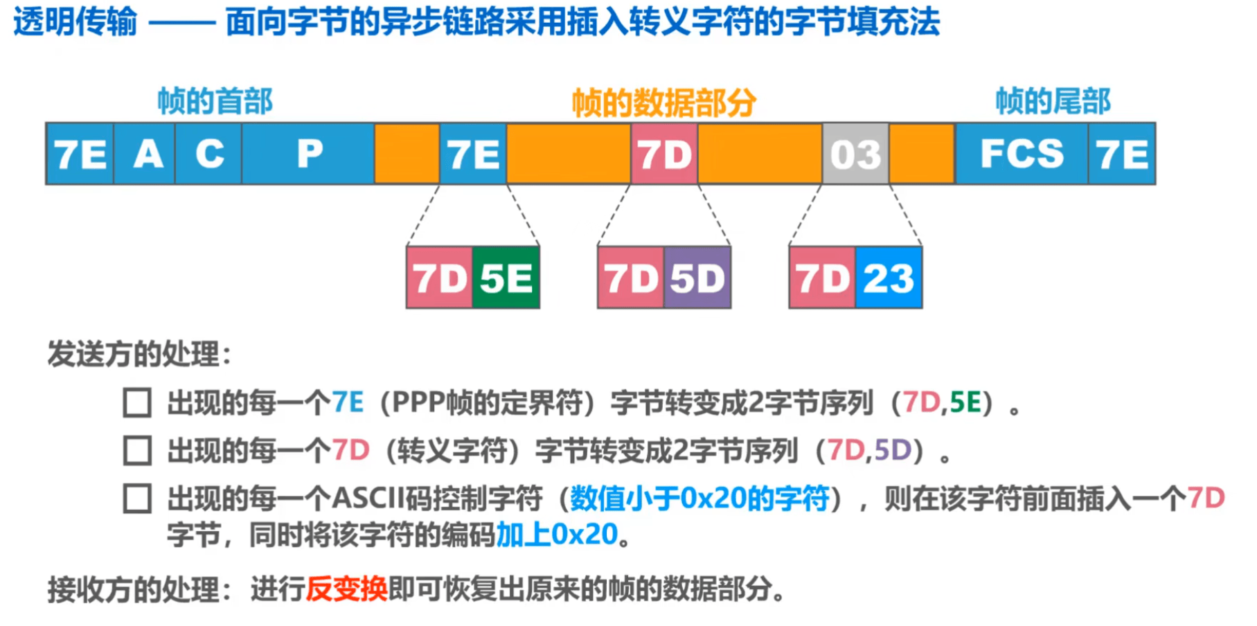 3)透明传输:对上层的协议数据单元内容没有限制,能够适应各种数据。例如数据中出现和帧头或帧尾相同的部分,通过添加转移字符避免接收方误判