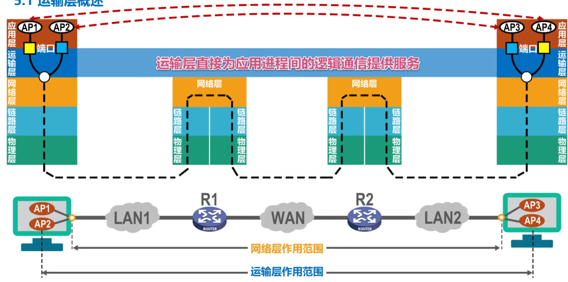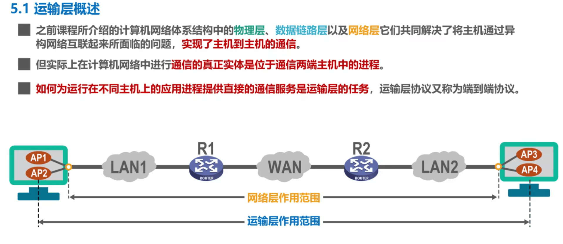 运输层任务:为运行在不同主机上的应用进程提供直接的通信服务