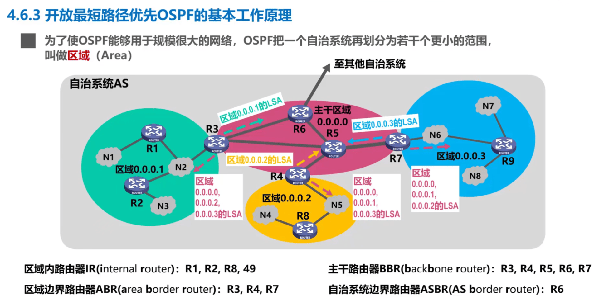 区域:为了用于大规模网络,对 AS 进一步细分,划分出很多“区域”