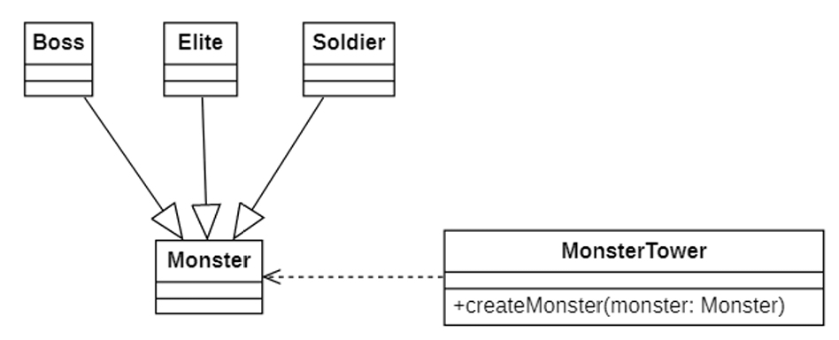 1)修改前,刷怪塔creatMonster类在扩展新怪物时需要修改类中的代码