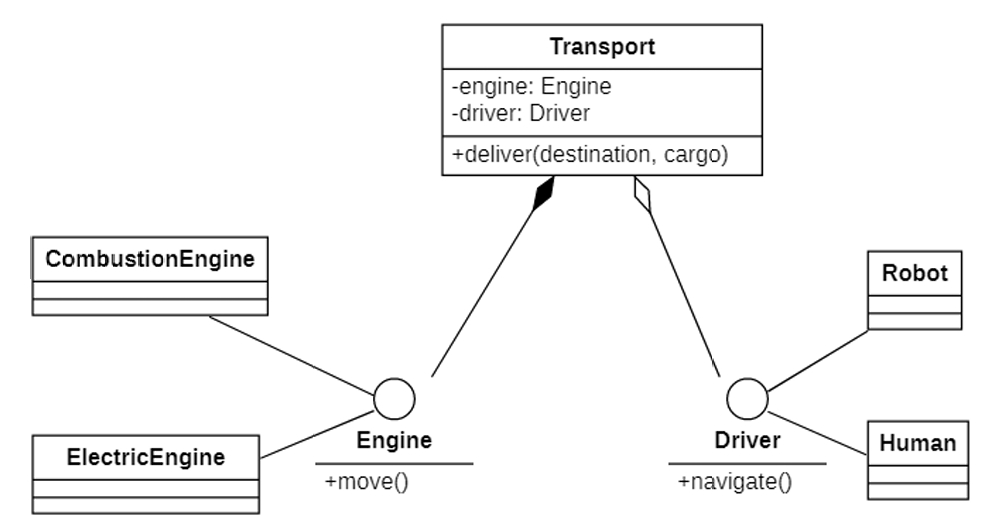 “黑箱”复用:组合/聚合的对象,其内部细节是不可见的。