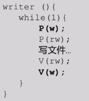 1)rw 是写文件的互斥变量,在写操作前后与读操作前后都要有 rw 的 PV 操作