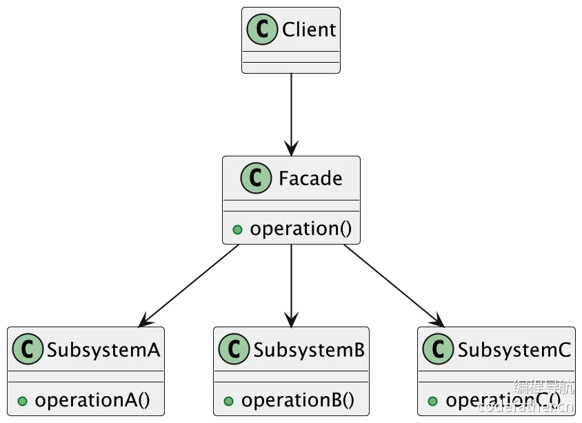 3)客户端(Client):通过外观类来使用子系统的功能